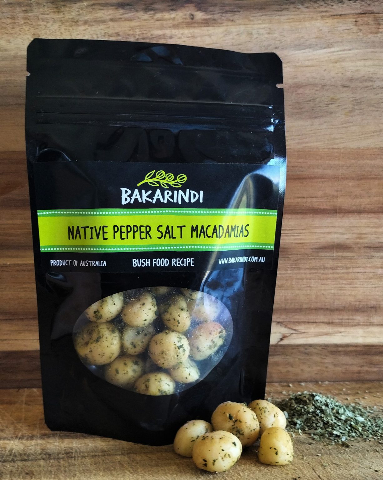 A premium blend of roasted macadamias seasoned with native Australian pepper and salt, offering a unique flavor combination that highlights quality local ingredients. Perfect as a snack or to enhance your favorite recipes.