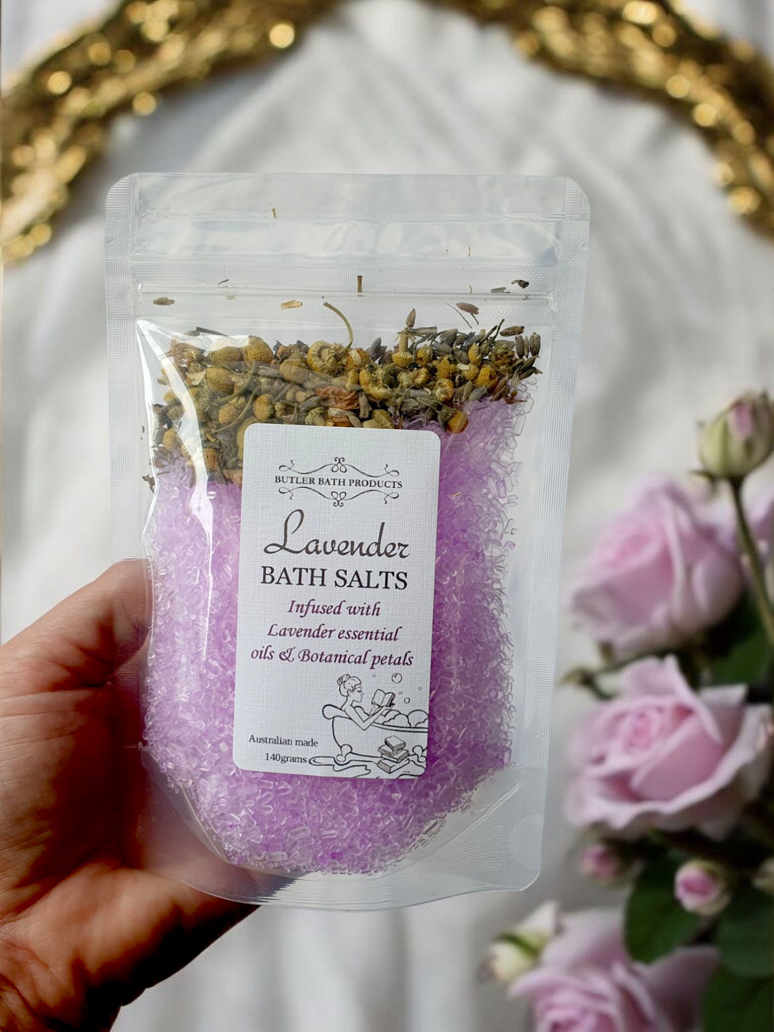 Indulge in relaxation with Our Lavender Bath Salts. This botanical blend, enriched with lavender buds, chamomile, and magnesium, soothes mind and body. Perfect for a calming gift or self-care, enjoy a spa experience at home.