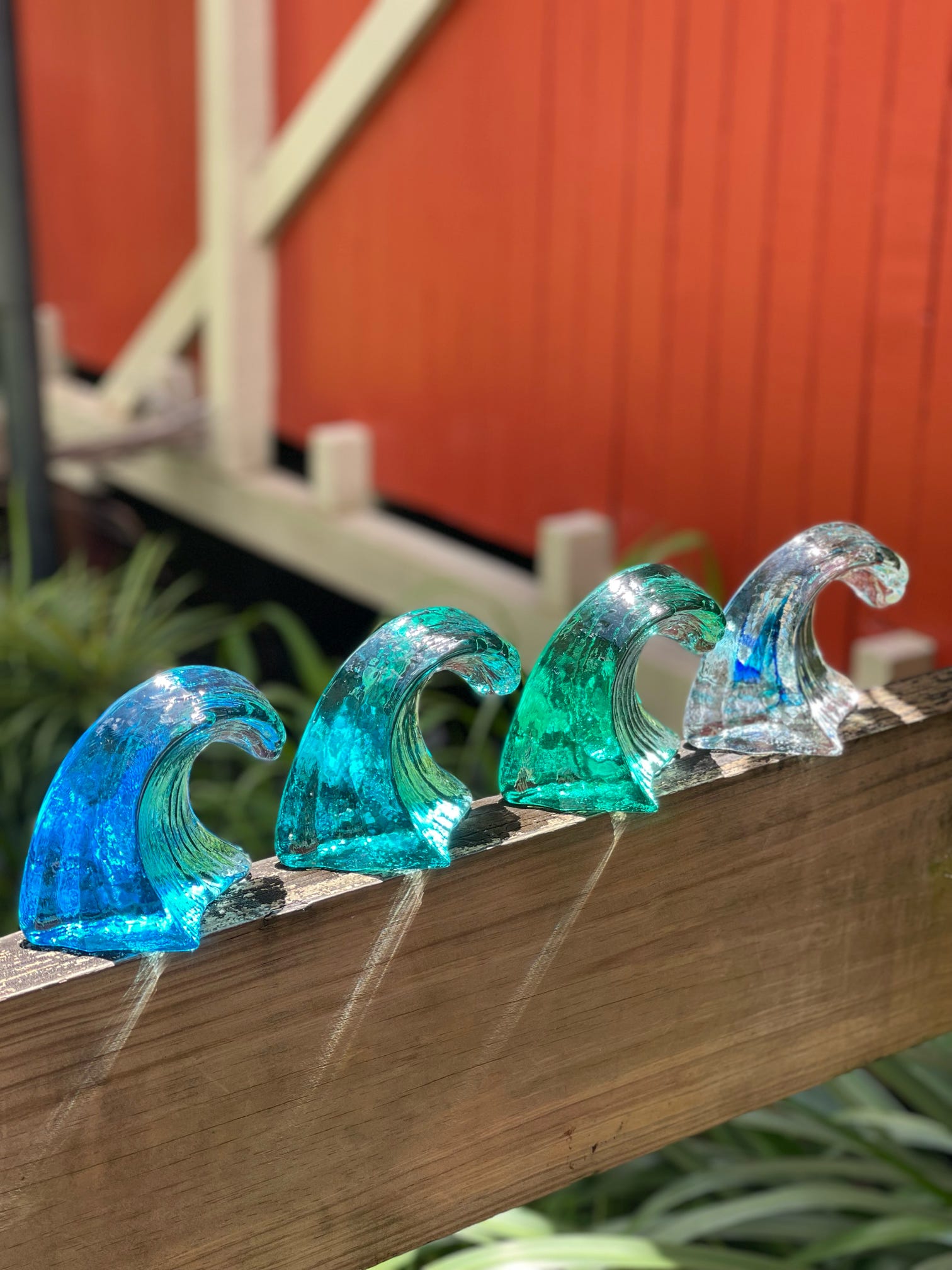 This Caslake & Pedler small glass wave features a handcrafted design with a unique, flowing shape. Its versatile style makes it an elegant addition to any decor setting.