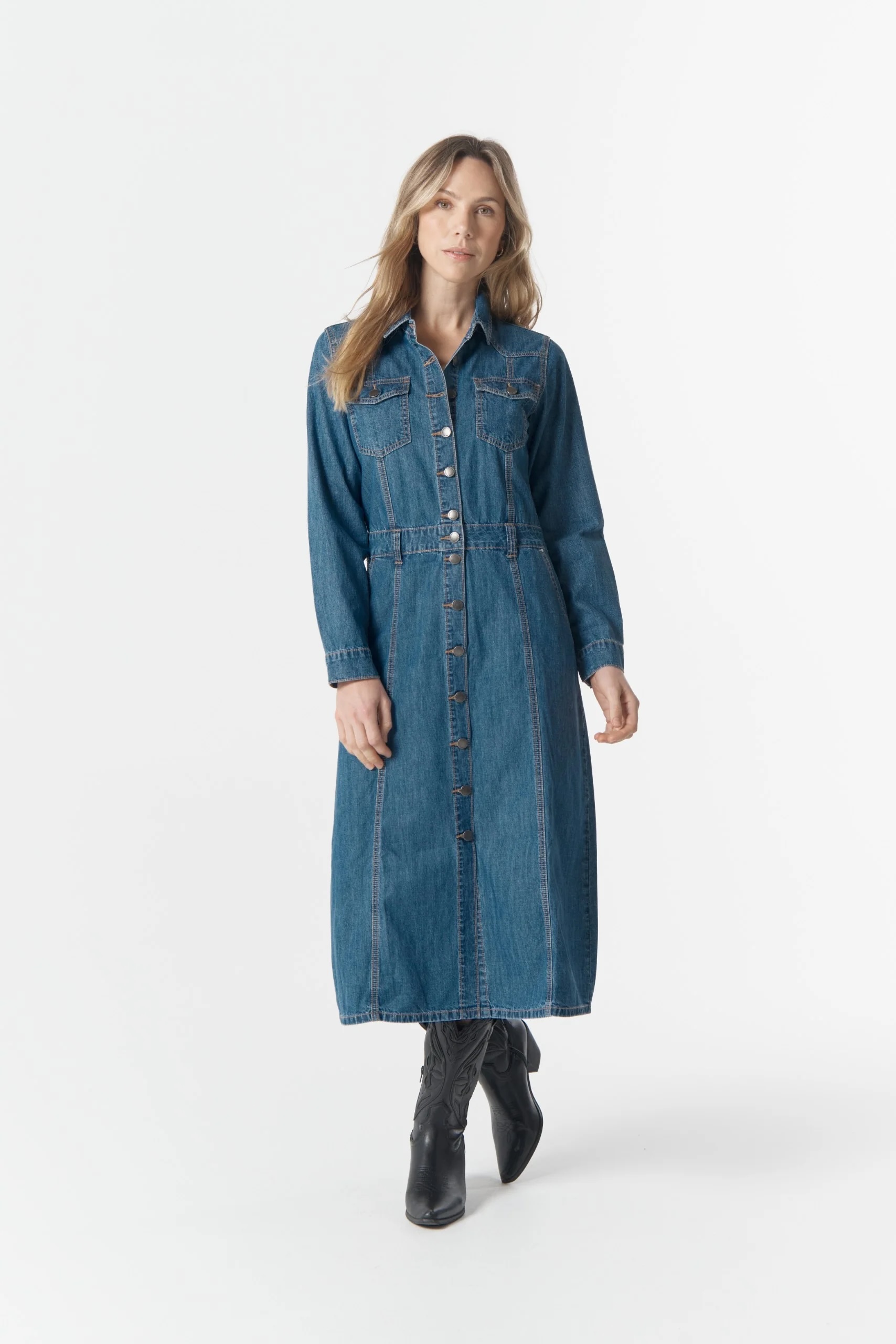 A wear-anywhere staple with effortless polish, this denim dress brings timeless style to everyday dressing.