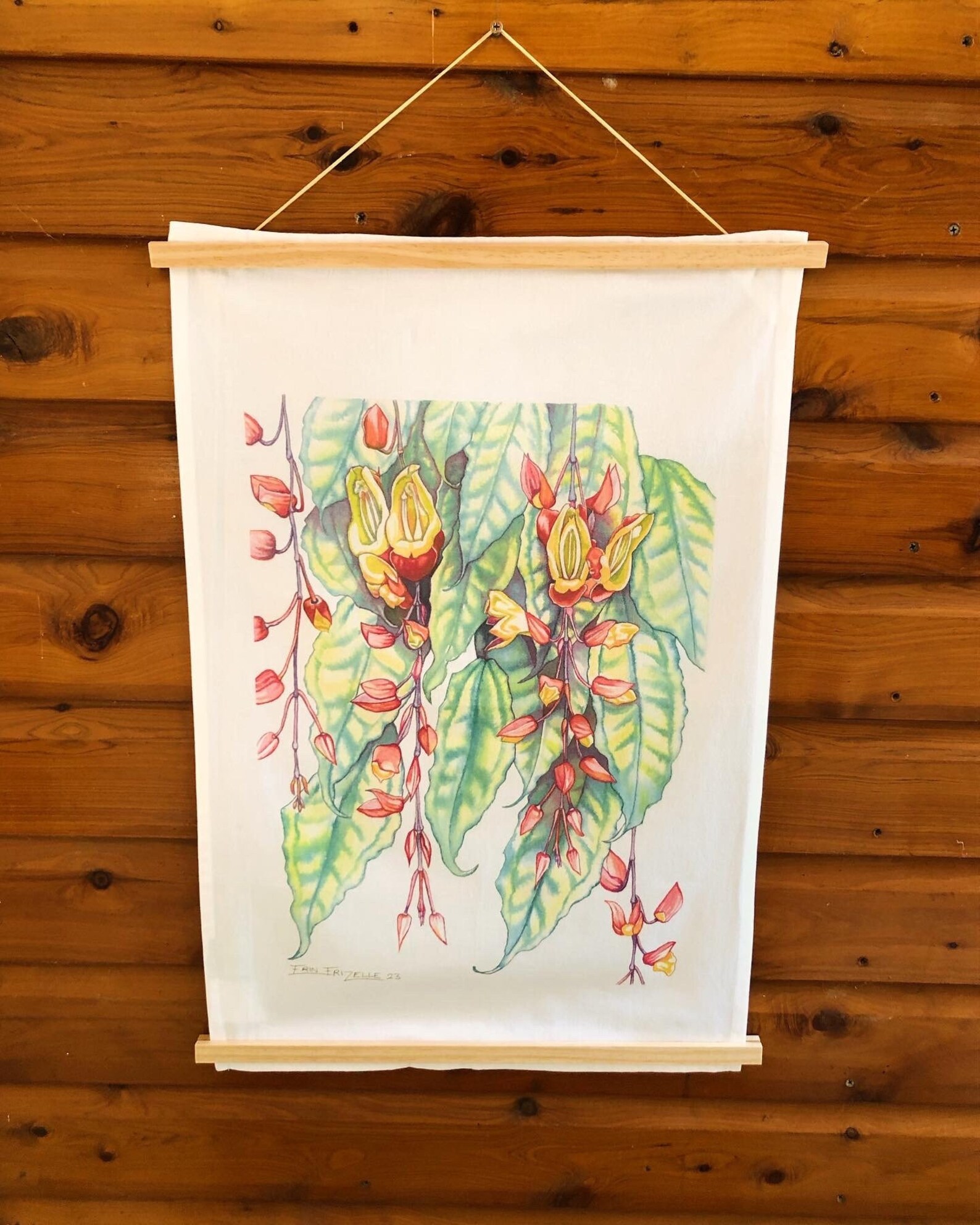 These quality organic cotton, generously sized ( 49 x 70cm ), tea towels have been created in Far North Queensland. They depict a stunning Lady Slipper Vine which is a unique plant that collectors in the tropics value for its beautiful and abundant floral display.